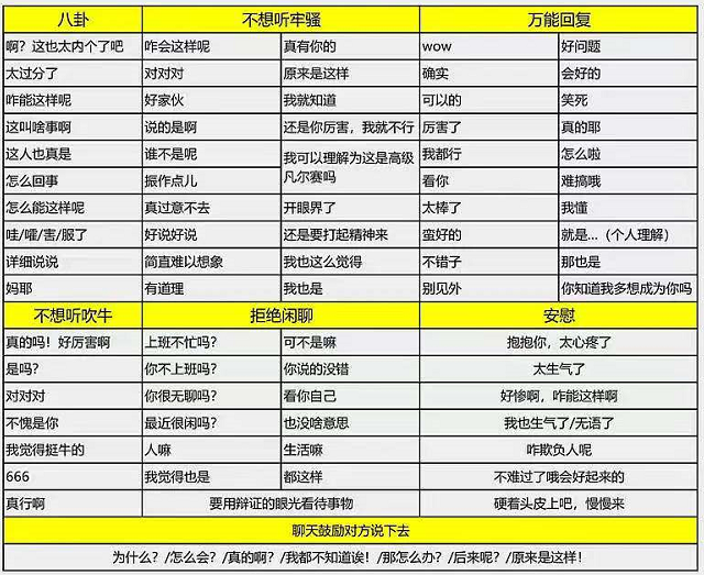 在廢話文學大紅之前,是糊弄學的流行,它的發起源豆瓣小組頗有一些“中庸”之道,在你不想得罪朋友,又不想聽他滿腹牢騷的時候,用一些萬金油短語來應付對方旺盛的傾訴欲。