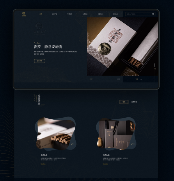 具體到青玄香養這個項目時,我們使用了襯線體,給字里行間帶來松弛感,頁面色彩沒有太浮夸,你把它放到產品的任何使用環境里去都是合適的。同時考慮到VIS系統標識,也延續了外包裝的藏藍與純金色。細節上找對符合燃香的傳統符號,飾從自然的點綴,同時在頁面中加了些路徑動畫,波紋動畫,使得整體效果更具有呼吸感。